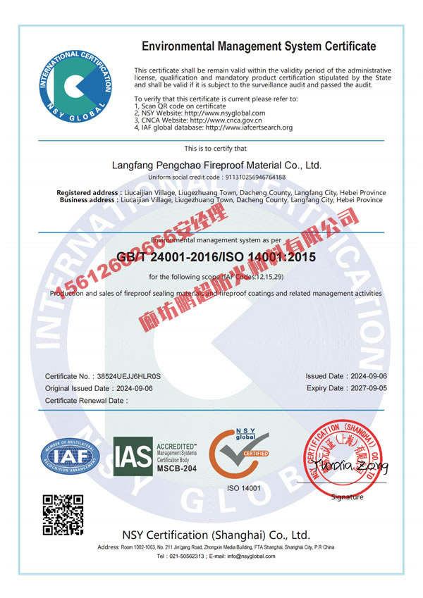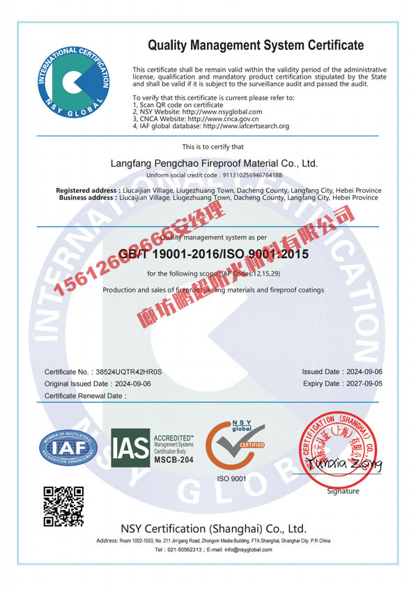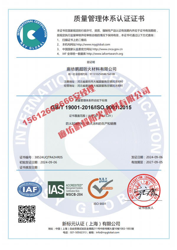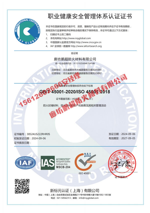 廊坊鵬超防火材料有限公司 手機(jī):15612602666 聯(lián)系人:安經(jīng)理 網(wǎng)址:m.yl123.com.cn 地址:河北省大城縣位敢工業(yè)園區(qū)